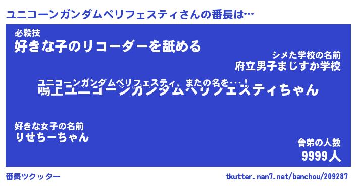 | 伝説のあだ名 | 『封印されしスナイパーユニコーンガンダムペリフェスティ』 |