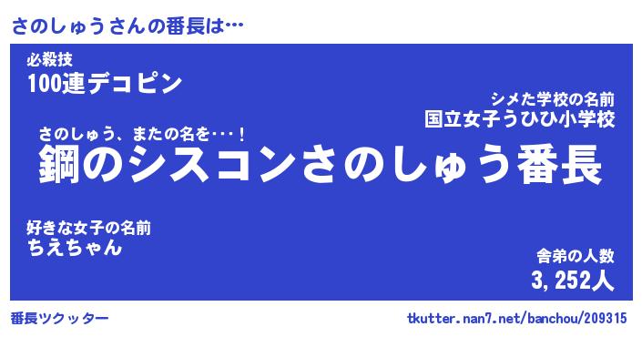 | 肩書あだ名 | 『さのしゅう御曹司』『さのしゅう班長』 |