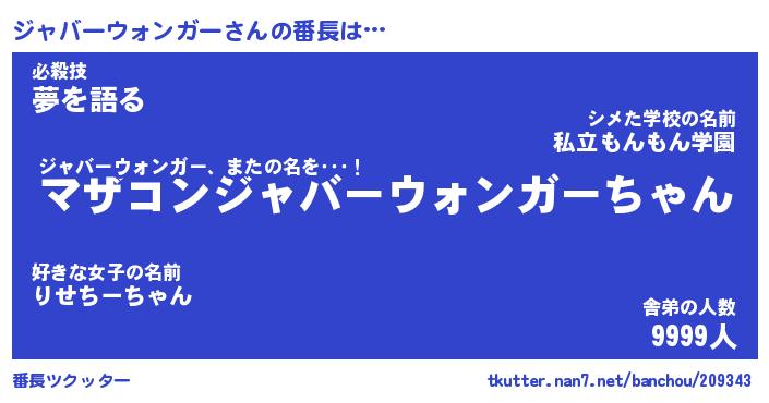 | ヒーロー風カッコイイあだ名 | 『スーパージャバーウォンガー』 |