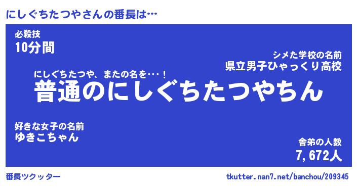 | 肩書あだ名 | 『にしぐちたつや御曹司』 |