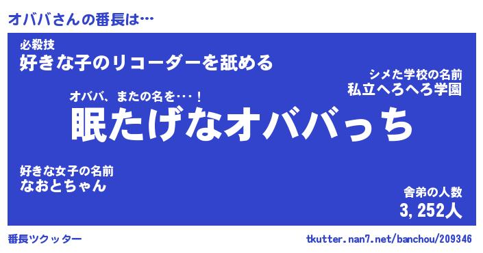 | 2回繰り返すあだ名 | 『オバオバ』『オオババ』『おやおや』 |