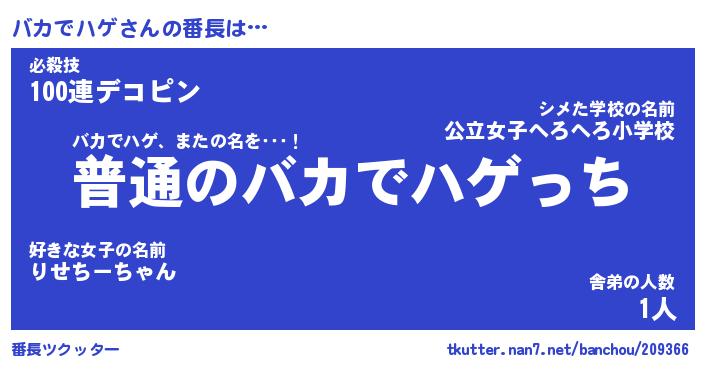 | ヒーロー風カッコイイあだ名 | 『スーパーバカデハゲ』『黄金騎士バカ』 |