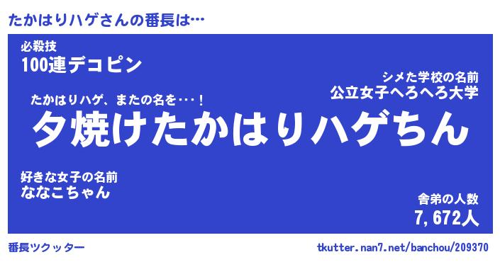 | 男性向けラノベタイトル風あだ名 | 『タカハリハゲアートオンライン』 |