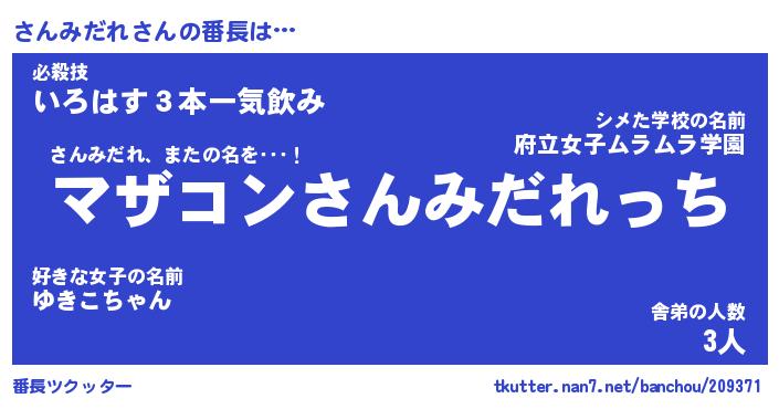 | ポケモン風あだ名 | 『サンチュウ』『サンミダネ』 |