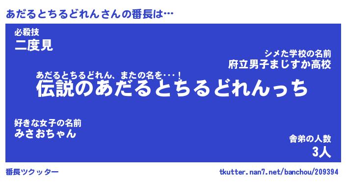 | ポケモン風あだ名 | 『アダチュウ』『アダルダネ』 |