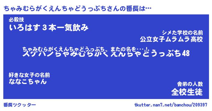 | 恥ずかしいあだ名 | 『プリティーちゃみむらがくえんちゃどうっぶち』 |