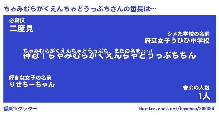 | 肩書あだ名 | 『ちゃみむらがくえんちゃどうっぶちCEO』 |