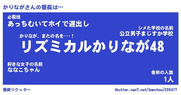 | 意味不明あだ名 | 『ペロリンかりなが』『永久保存かりなが』 |
