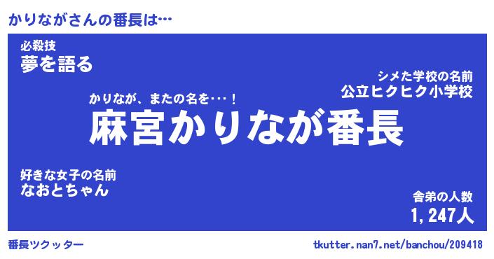 | 意味不明あだ名 | 『ペロリンかりなが』『永久保存かりなが』 |