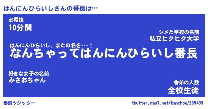 | ヘコむあだ名 | 『はんにー』『つくし』『はんぷりん』 |