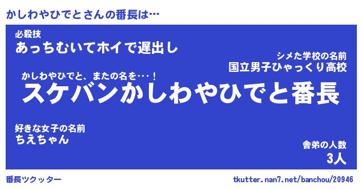 | ヒーロー風カッコイイあだ名 | 『スーパーカシワヤヒデト』 |