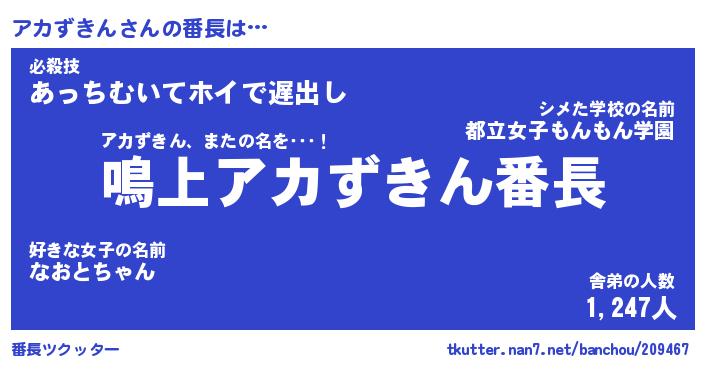 | ヒーロー風カッコイイあだ名 | 『スーパーアカズキン』『銀牙騎士アカ』 |