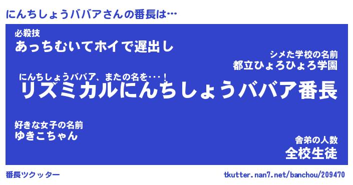 | ヒーロー風カッコイイあだ名 | 『スーパーニンチショウババア』 |