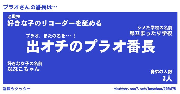 | 肩書あだ名 | 『プラオ社長』『プラオ総理大臣』 |