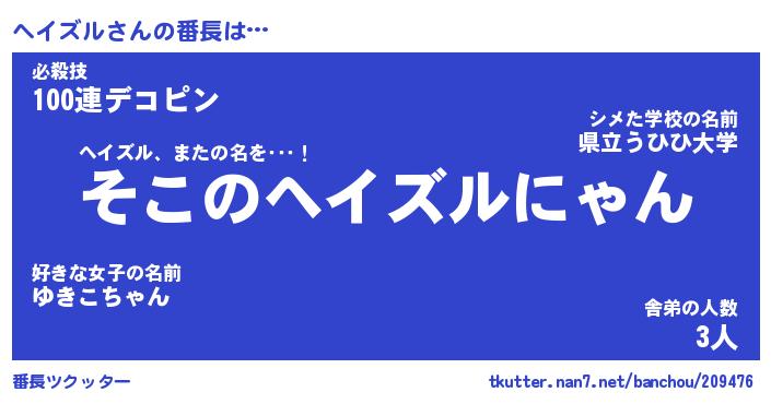 | 意味不明あだ名 | 『ペロリンヘイズル』『永久保存ヘイズル』 |