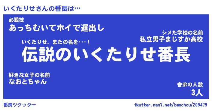 | ヘコむあだ名 | 『いくもー』『つくし』『いく太郎』 |