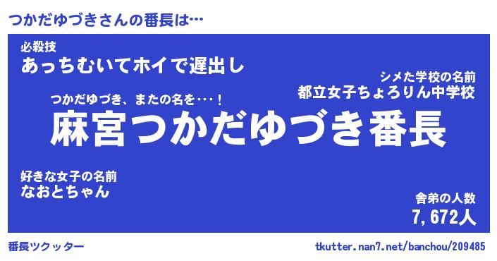 | 肩書あだ名 | 『つかだゆづき社長』『つかだゆづき班長』 |