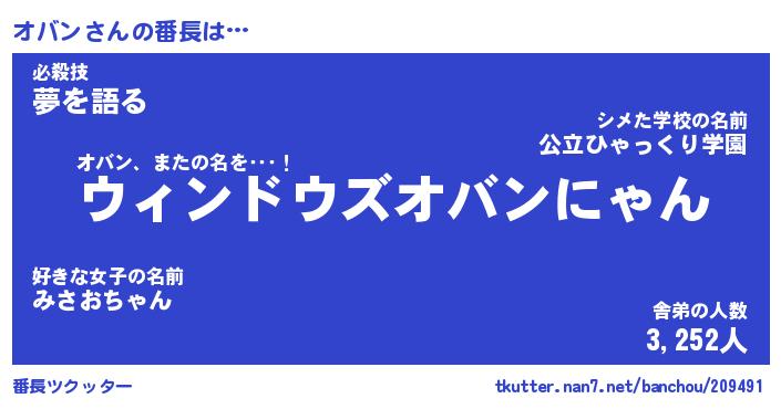 | 意味不明あだ名 | 『ペロリンオバン』『オバンフォーエバー』 |