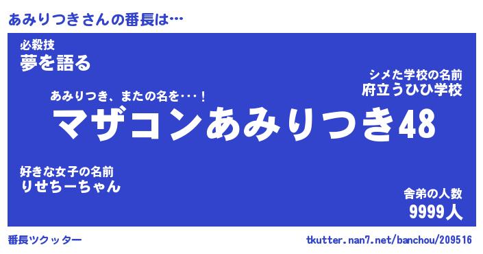 | ヒーロー風カッコイイあだ名 | 『スーパーアミリツキ』『魔戒騎士アミ』 |