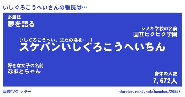| ピコ太郎風あだ名 | 『イコ五郎』『ピイ十郎』『イシ二郎』 |