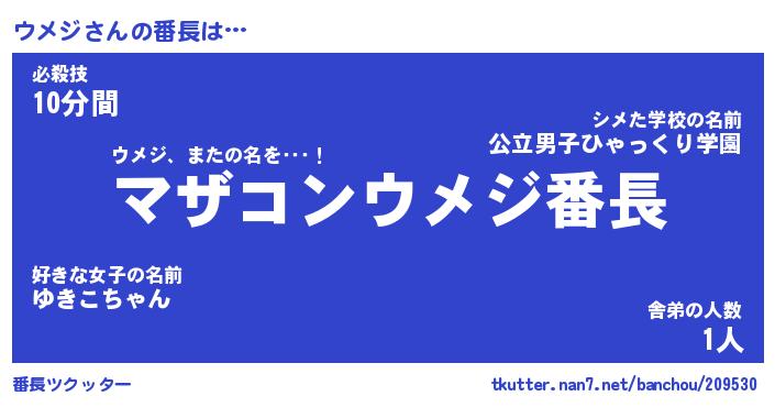 | ヒーロー風カッコイイあだ名 | 『スーパーウメジ』『ウルトラウメジマン』 |