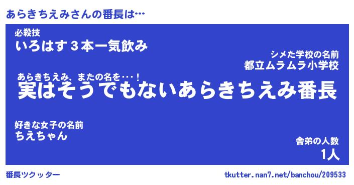 | ヒーロー風カッコイイあだ名 | 『スーパーアラキチエミ』『黄金騎士アラ』 |