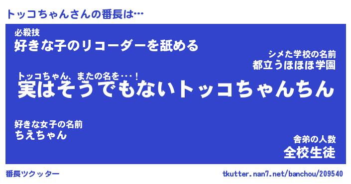 | ヒーロー風カッコイイあだ名 | 『スーパートッコチャン』『暗黒騎士トッ』 |