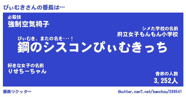 | ヒーロー風カッコイイあだ名 | 『スーパーピィムキ』『暗黒騎士ピィ』 |