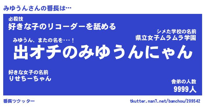 | 伝説のあだ名 | 『伝説のスナイパーみゆうん』 |