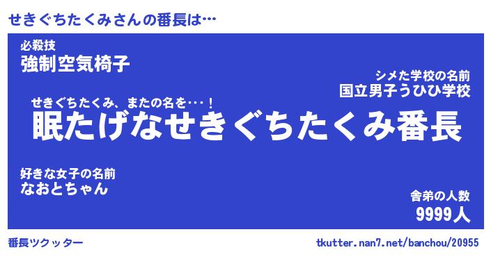 | 伝説のあだ名 | 『封印されし傭兵せきぐちたくみ』 |