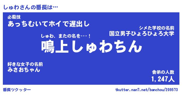 | ヘコむあだ名 | 『しゅっふぃ~』『豆乳』『しゅ太郎』 |