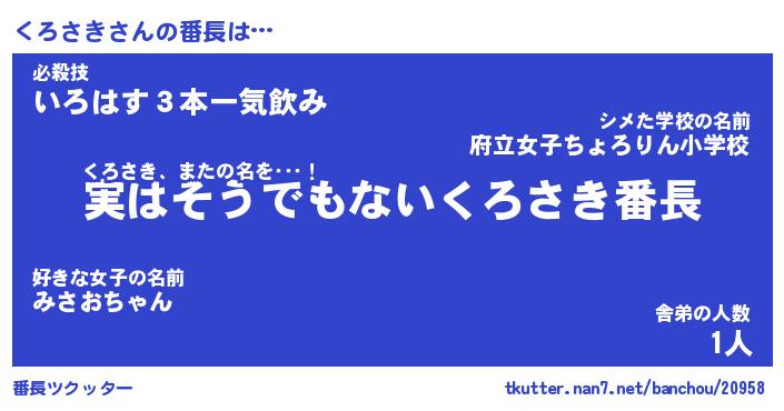 | 意味不明あだ名 | 『ペロリンくろさき』『永久保存くろさき』 |
