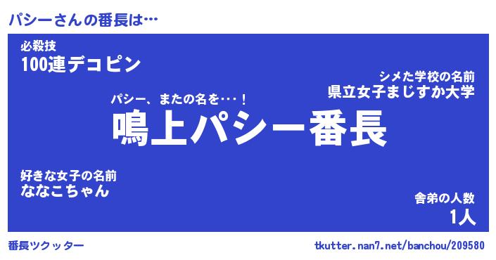 | 意味不明あだ名 | 『ペロリンパシー』『パシーフォーエバー』 |