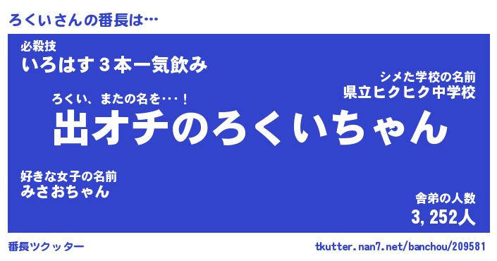 | 意味不明あだ名 | 『ペロリンろくい』『ろくいフォーエバー』 |