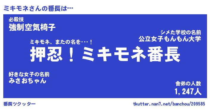 | 意味不明あだ名 | 『ペロリンミキモネ』『永久保存ミキモネ』 |