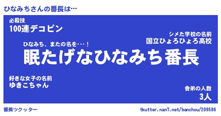 | 伝説のあだ名 | 『封印されしスナイパーひなみち』 |