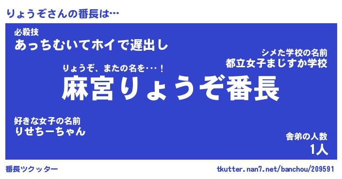 | 意味不明あだ名 | 『ペロリンりょうぞ』『永久保存りょうぞ』 |