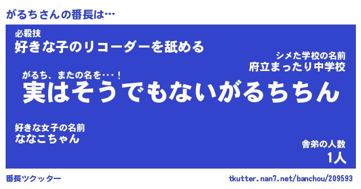 | 意味不明あだ名 | 『ペロリンがるち』『がるちフォーエバー』 |