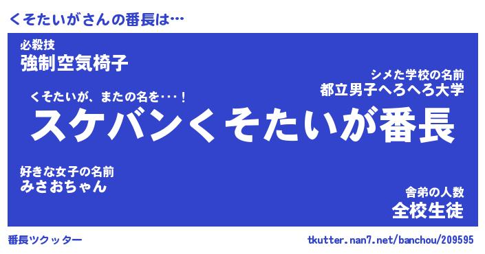 | ツイッター | くそたいがさんのツイッターID『katatsumuri_man』 |