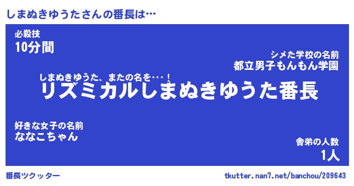 | 恥ずかしいあだ名 | 『プリティーしまぬきゆうた』『しまちん』 |