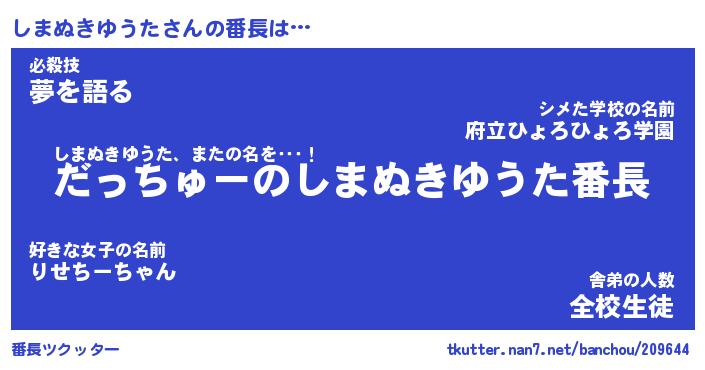 | 伝説のあだ名 | 『伝説のスナイパーしまぬきゆうた』 |