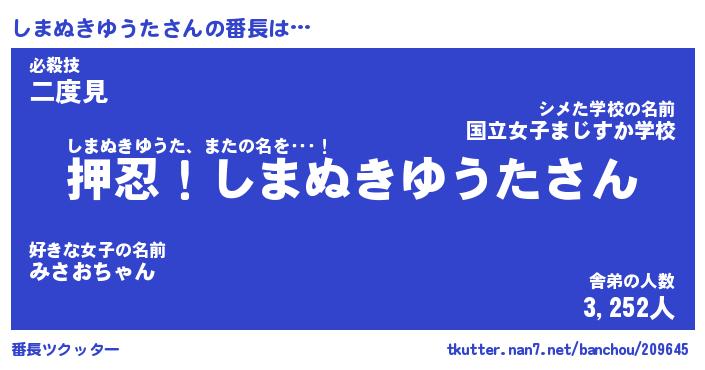 | 伝説のあだ名 | 『封印されしスナイパーしまぬきゆうた』 |