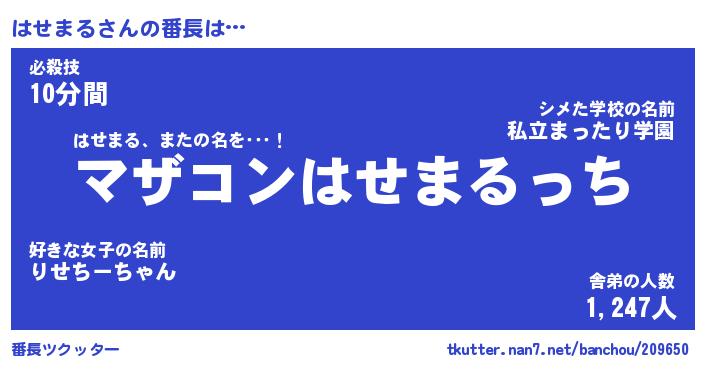 | ヒーロー風カッコイイあだ名 | 『スーパーハセマル』『魔戒騎士ハセ』 |