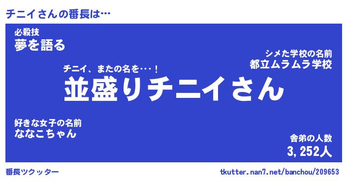 | 肩書あだ名 | 『チニイ店長』『チニイ総理大臣』 |
