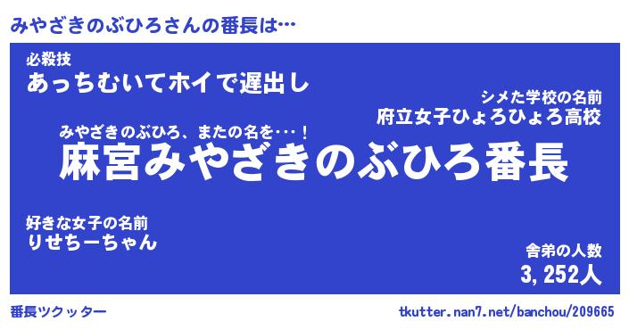 | ヘコむあだ名 | 『みやっふぃ~』『牛乳』『みやっぺ』 |