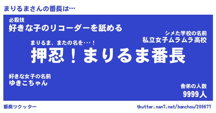| 肩書あだ名 | 『まりるま店長』『まりるま総理大臣』 |