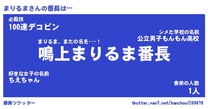 | ピコ太郎風あだ名 | 『マコ六郎』『ピマ二郎』『マリ五郎』 |