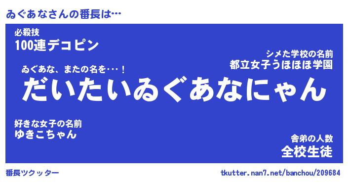 | 意味不明あだ名 | 『ペロリンゐぐあな』『永久保存ゐぐあな』 |