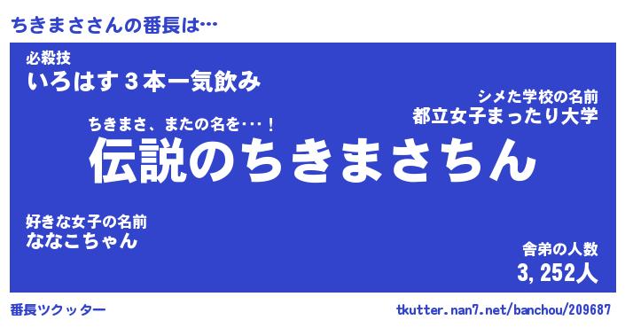 | 意味不明あだ名 | 『ペロリンちきまさ』『永久保存ちきまさ』 |