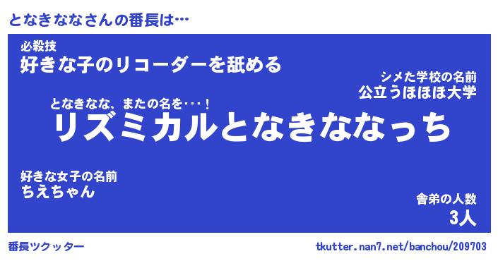 | ファンタジー風あだ名 | 『トナフェル』『エターナルトナキナナー』 |